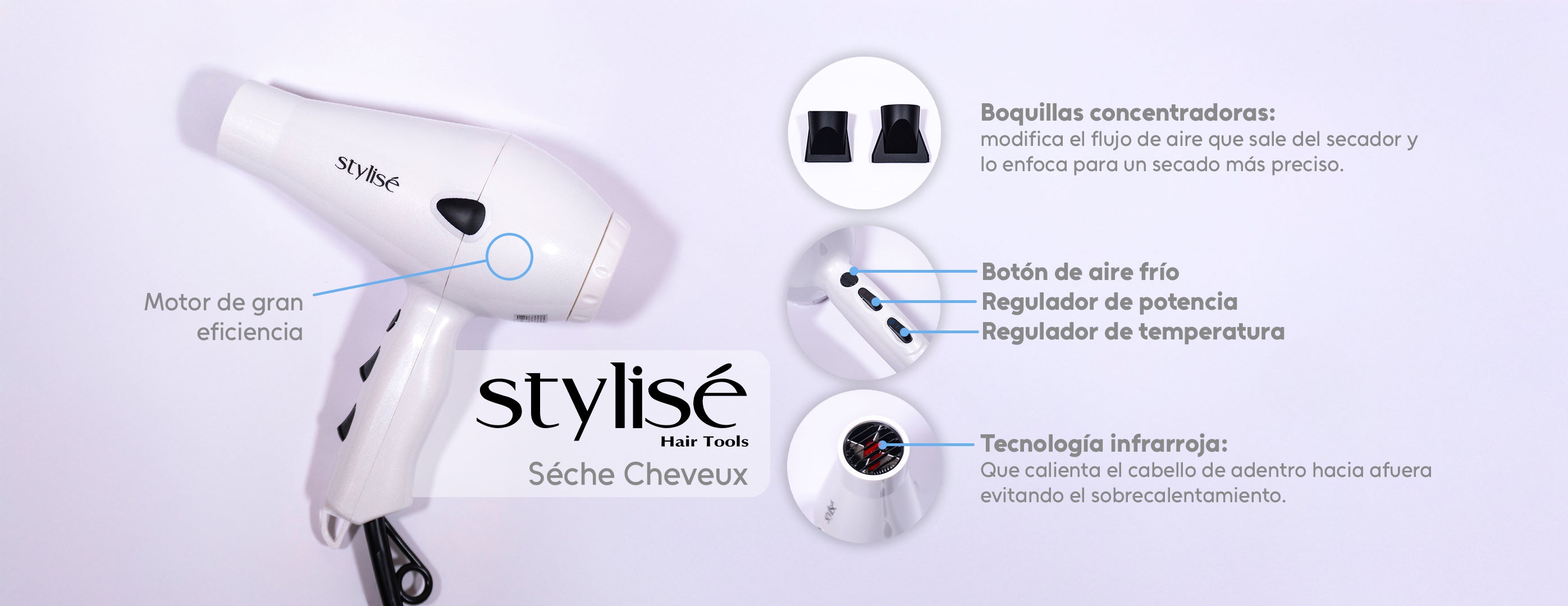 Secadora Profesional para cabello con tecnología infrarrojo de ingeniería francesa Stylisé
